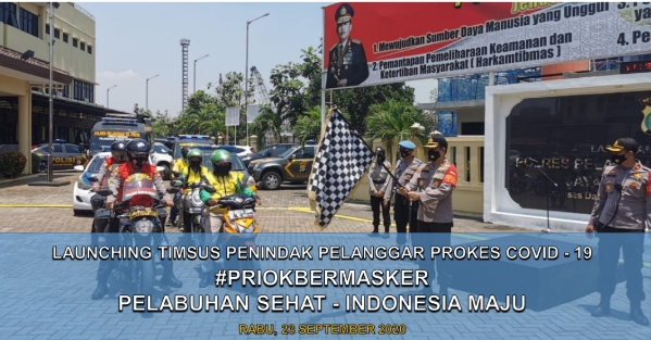 Tanjung Priok – Guna Penegakkan Disiplin Protokol Kesehatan (Prokes) mencegah penyebaran Covid-19, Kapolres Pelabuhan Tanjung Priok, AKBP. Dr. Ahrie Sonta memimpin Launching Timsus Penindak Pelanggar Prokes Covid – 19 dan Penegak Disiplin Berbasis Komunitas Ojeg Online dan Ojek Pangkalan di Wilayah hukum Polres Pelabuhan Tanjung Priok.