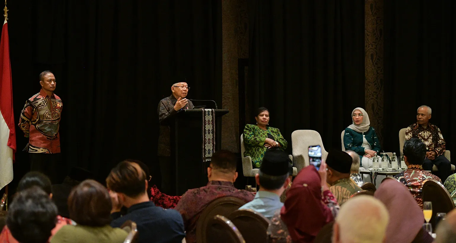 Dalam sambutannya, Wapres menyampaikan tentang komitmen Indonesia untuk selalu menjadi problem solver, bagian dari solusi, bukan bagian dari masalah, demi menjaga perdamaian dunia.