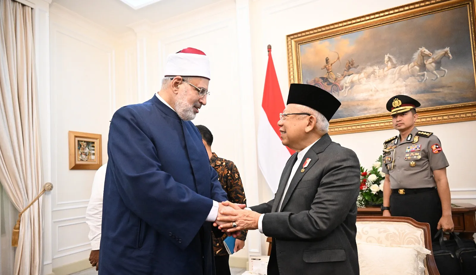 Jakarta, Mediaonline.co.id – Wakil Presiden (Wapres) K.H. Ma’ruf Amin menerima kunjungan kehormatan dari Wakil Grand Syekh (Imam Besar) Al-Azhar Kairo, Mesir, Mohammed Abdel Rahman Ad Duweiny, di Istana Wakil Presiden, Jl. Merdeka Selatan No.6, Jakarta Pusat, Jumat (21/06/2024).