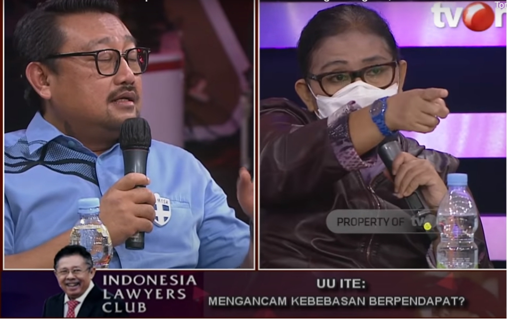 Mediaonline.co.id, JAKARTA– Dalam acara ILC dengan teman “UU ITE : Mengancam Kebebasan Berpendapat ?” telah lewat beberapa hari terjadi perdebatan antara politikus Partai Demokrat Rachland Nasidik dengan politikus Partai nasdem Irma Chaniago.