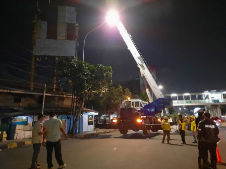 Satuan Polisi Pamong Praja (Satpol PP) Provinsi DKI Jakarta membongkar tiga papan reklame di Jalan Jembatan Batu, Pinangsia, Taman Sari, Jakarta Barat, Jumat (13/11) malam.