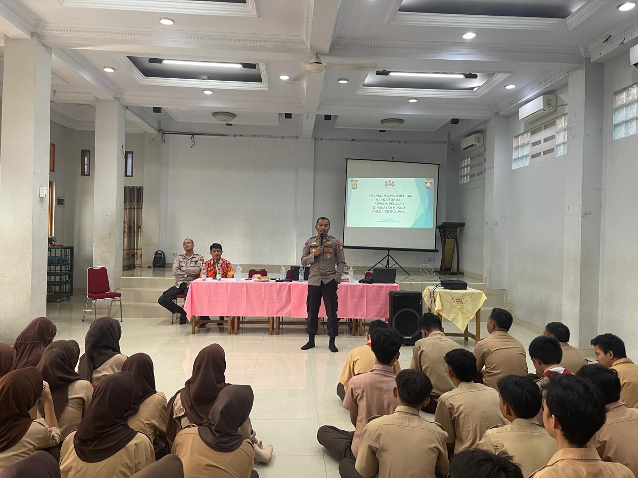 Jakarta Selatan – Dalam rangka menjaga keamanan dan ketertiban masyarakat di kalangan pelajar, unit Binmas Polsek Pesanggrahan yang dipimpin oleh Kanit Binmas, Iptu I Putu Yudho, memberikan pembinaan dan penyuluhan kepada siswa-siswi SMK Perwira, Ulujami, Kamis (26/9/2024).