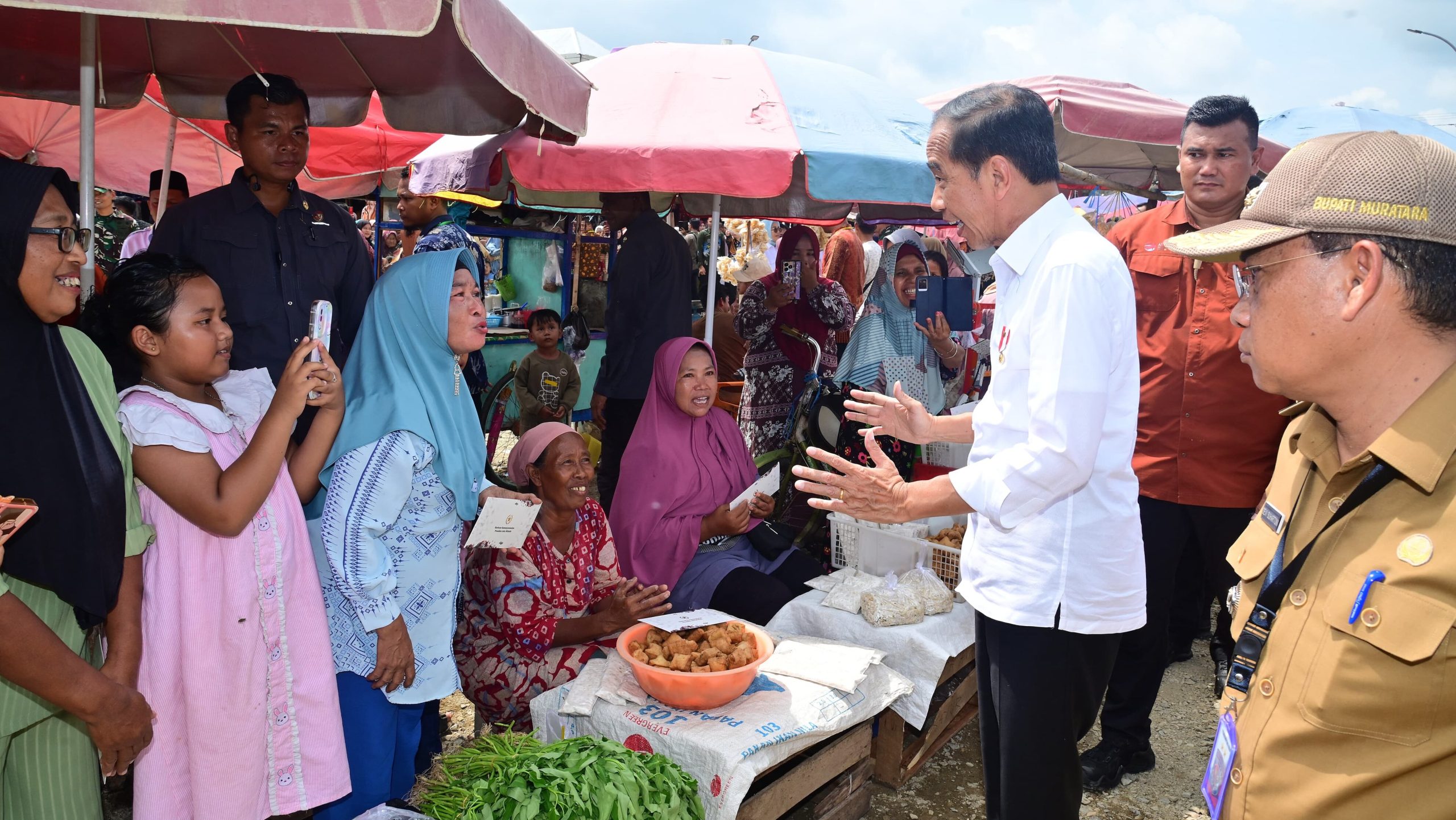 Presiden Joko Widodo melakukan peninjauan ke Pasar Lawang Agung di Kabupaten Musi Rawas Utara sebagai bagian dari agenda kunjungannya ke Provinsi Sumatra Selatan, Kamis, 30 Mei 2024. Tujuan utama peninjauan ini adalah untuk memastikan stabilitas harga bahan pokok di pasar lokal.