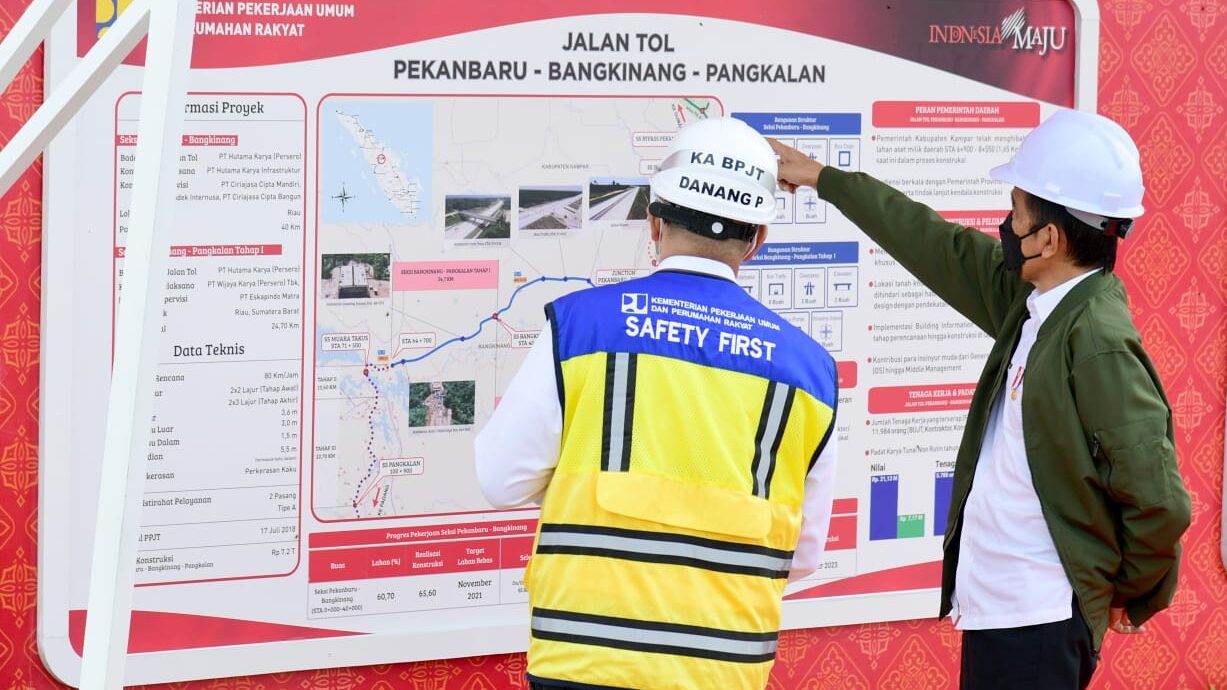 “Ini berada di (jalan tol seksi) Pekanbaru-Bangkinang dan nantinya akan terhubung ke arah Padang. Kita harapkan perkembangan pembangunannya semakin hari semakin panjang,” ujar Presiden dalam keterangannya di lokasi.