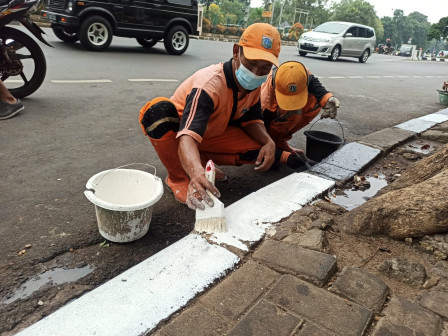 Trotoar lima jalan di wilayah Kelurahan Cilandak Timur, Pasar Minggu, Jakarta Selatan, dicat ulang…