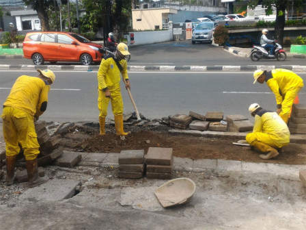 Heru menambahkan, ada sekitar 10 titik lokasi di trotoar tersebut yang rusak dengan panjang satu titiknya antara empat sampai enam meter.