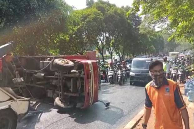 Truk Galon Guling di TB Simatupang, Kemacetan Lalu Lintas Sampai 4 Km