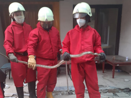 Petugas Suku Dinas Penanggulangan Kebakaran dan Penyelamatan (Sudin Gulkarmat) Jakarta Barat berhasil mengevakuasi ular kobra sepanjang satu meter dari Wisma BNI 46 Kemukus, Jl Lada Dalam, Pinangsia, Taman Sari.