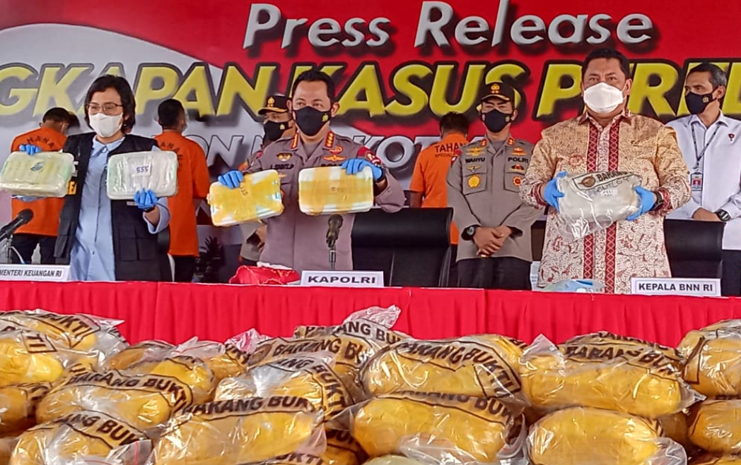 Kabareskrim Polri (Komjen. Pol. Agus Andrianto) menjelaskan sebanyak 18 orang tersangka yang diamankan terkait dengan peredaran narkotika jenis sabu. Seluruh tersangka diketahui memiliki peran masing – masing seperti pengendali, transporter hingga pemesan.