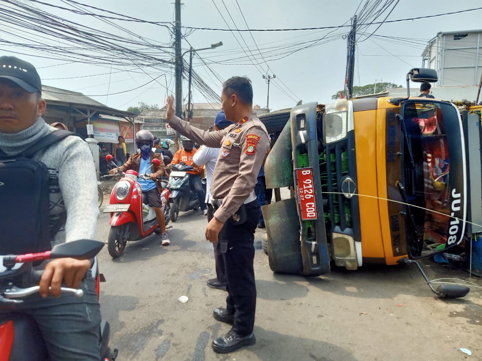 Dalam rangka Menciptakan Keamanan, Keselamatan, Ketertiban dan Kelancaran Lalu Lintas, Anggota Unit Lantas Polsek Neglasari melakukan Pengaturan lalu lintas dan evakuasi Truk bermuatan sampah yang terguling.