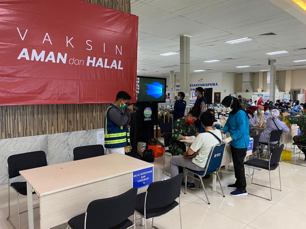 Jakarta- Pelaksanaan Vaksinasi Massal Covid-19 Untuk Masyarakat Maritim Gelombang Ke – 11 (Sebelas) Di Ruang Tunggu Terminal Penumpang Nusantara Pura Pelabuhan Tanjung Priok Hari Rabu tanggal 24 Juni 2021.
