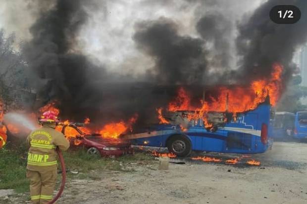 Sebelumnya, viral video berisi bus terbakar di dalam salah satu pool di kawasan Gatot Subroto-Kuningan, Jakarta Selatan. Belum diketahui penyebab bus ini terbakar.
