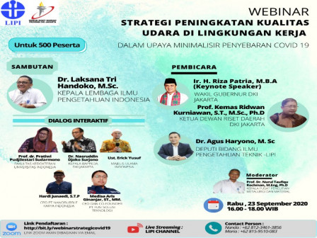 Perlu diketahui, webinar tersebut diikuti oleh Kepala LIPI, Laksana Tri Handoko; Ketua Dewan Riset Daerah (DRD) DKI Jakarta, Kemas Ridwan Kurniawan; serta beberapa pakar seperti Pratiwi Pujilestari Sudarmono, Nasrudin Joko Surjono, Medisa Aris Ginanjar, serta Hardi Junaedi.
