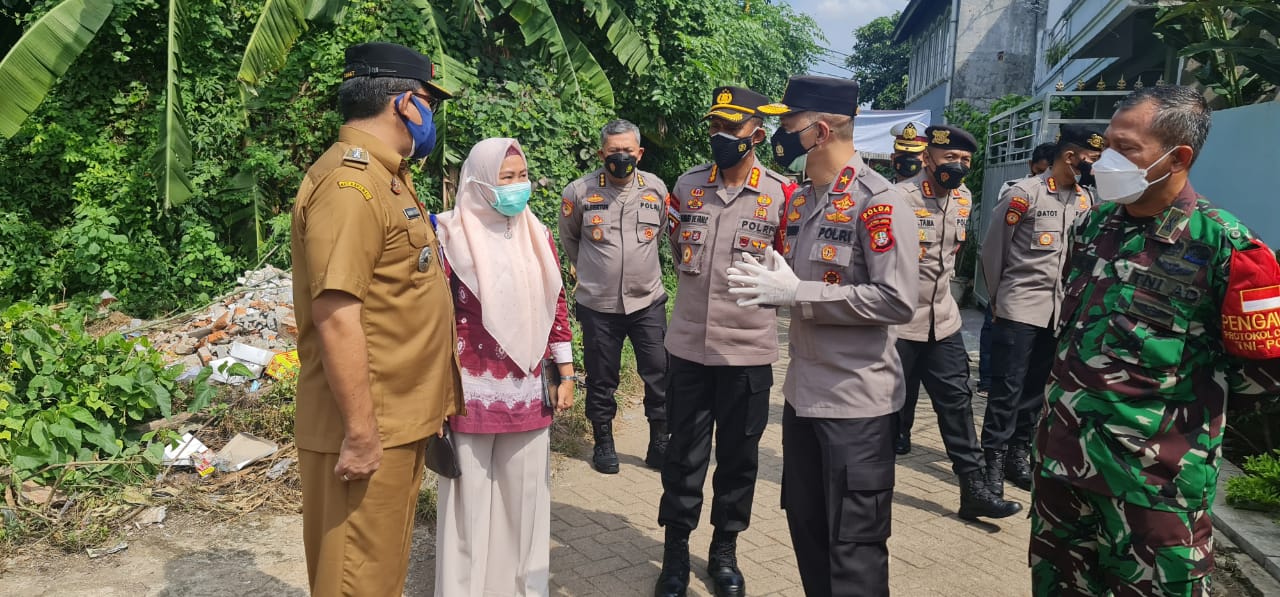 Setelah peninjauan kegiatan Vaksinasi massal Wakapolda Metro Jaya beserta rombongan Pejabat Utama dan Kapolres Metro Tangerang Kota Kombes Pol Deonijiu De Fatima,S.Ik,Sh mengunjungi Pos PPKM Mikro Lockdown di Rt 03/08 Kelurahan Cimone Jaya Kec.Karawaci Kota Tangerang .