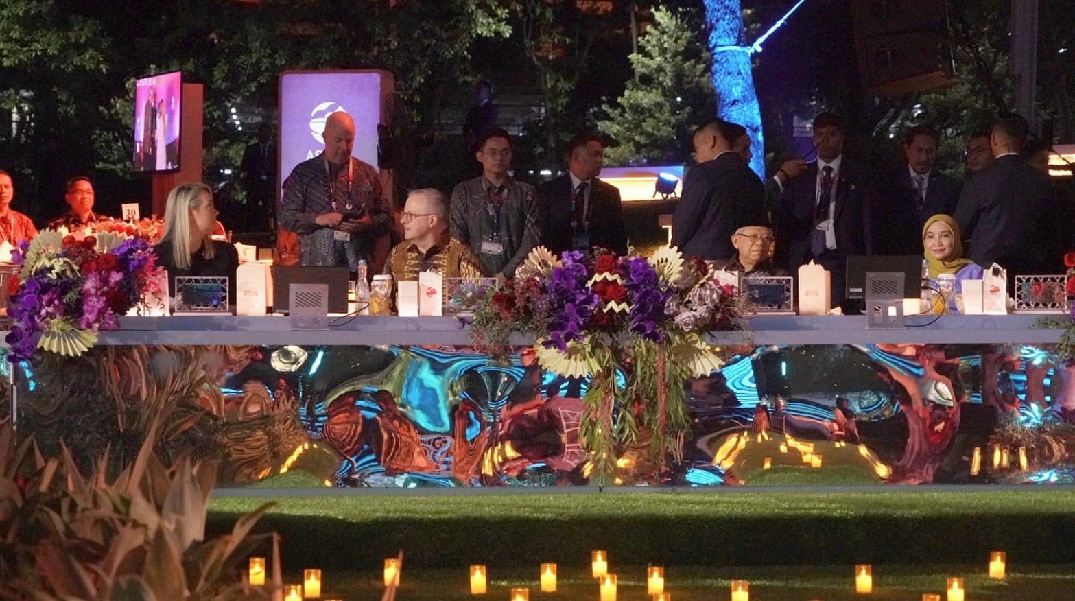 Selepas santap malam, para tamu undangan disuguhi beragam penampilan kesenian, mulai dari lantunan alat musik tradisional sasando khas Nusa Tenggara Timur, tarian yang menggambarkan seluruh negara anggota ASEAN, hingga penampilan sejumlah musisi di Tanah Air yang dipadukan dengan persembahan koreografi serta pertunjukan multimedia dan laser yang menghiasi gedung-gedung di sekitar lokasi, menambah kemeriahan acara.
