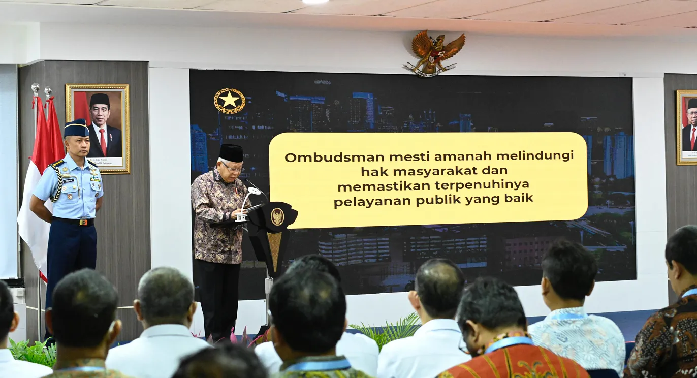 Jakarta, Mediaonline.co.id – Wakil Presiden (Wapres) K.H. Ma’ruf Amin siang ini, Kamis (14/03/2024), menghadiri peluncuran Laporan Tahunan 2023 Ombudsman RI di Kantor Ombudsman, Jl. H.R. Rasuna Said, Karet Kuningan, Jakarta Selatan. Dalam sambutannya, Wapres menuturkan bahwa eksistensi Ombudsman sebagai lembaga negara yang independen diawali dari tuntutan kuat masyarakat, agar pemerintahan berjalan bersih dan memiliki tata kelola yang baik. Dengan demikian, hak-hak masyarakat akan terlayani secara adil dan berdampak terhadap kesejahteraan masyarakat.