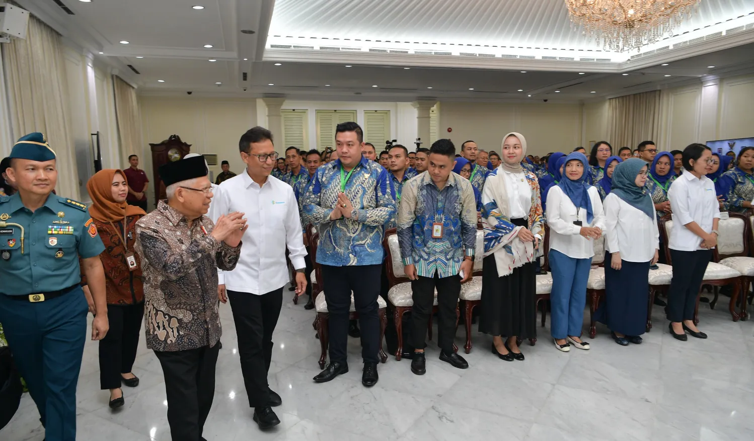 Hadir mendampingi Wapres pada audiensi ini Kepala Sekretariat Wakil Presiden Ahmad Erani Yustika, Deputi Bidang Dukungan Kebijakan Pembangunan Manusia dan Pemerataan Pembangunan Suprayoga Hadi, Staf Khusus (Stafsus) Wapres Bidang Reformasi Birokrasi Mohamad Nasir, Stafsus Wapres Bidang Komunikasi dan Informasi Masduki Baidlowi, Stafsus Wapres Bidang Umum Masykuri Abdillah, Stafsus Wapres Bidang Penanggulangan Kemiskinan dan Otonomi Daerah M. Imam Aziz. (HB/RJP – rls)