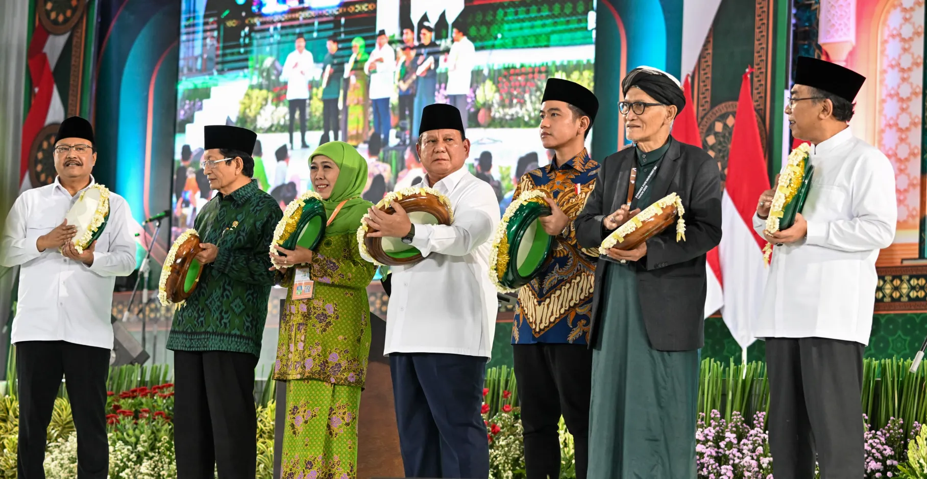 Wakil Presiden (Wapres) Gibran Rakabuming mendampingi Presiden Prabowo Subianto dalam Pembukaan Kongres Ke-18 Muslimat Nahdlatul Ulama (NU) yang diselenggarakan di Jatim International Expo (JIE) Convention Exhibition, Jl. Ahmad Yani No. 99, Jemur Wonosari, Kec. Wonocolo, Surabaya, pada Senin (10/02/2025).