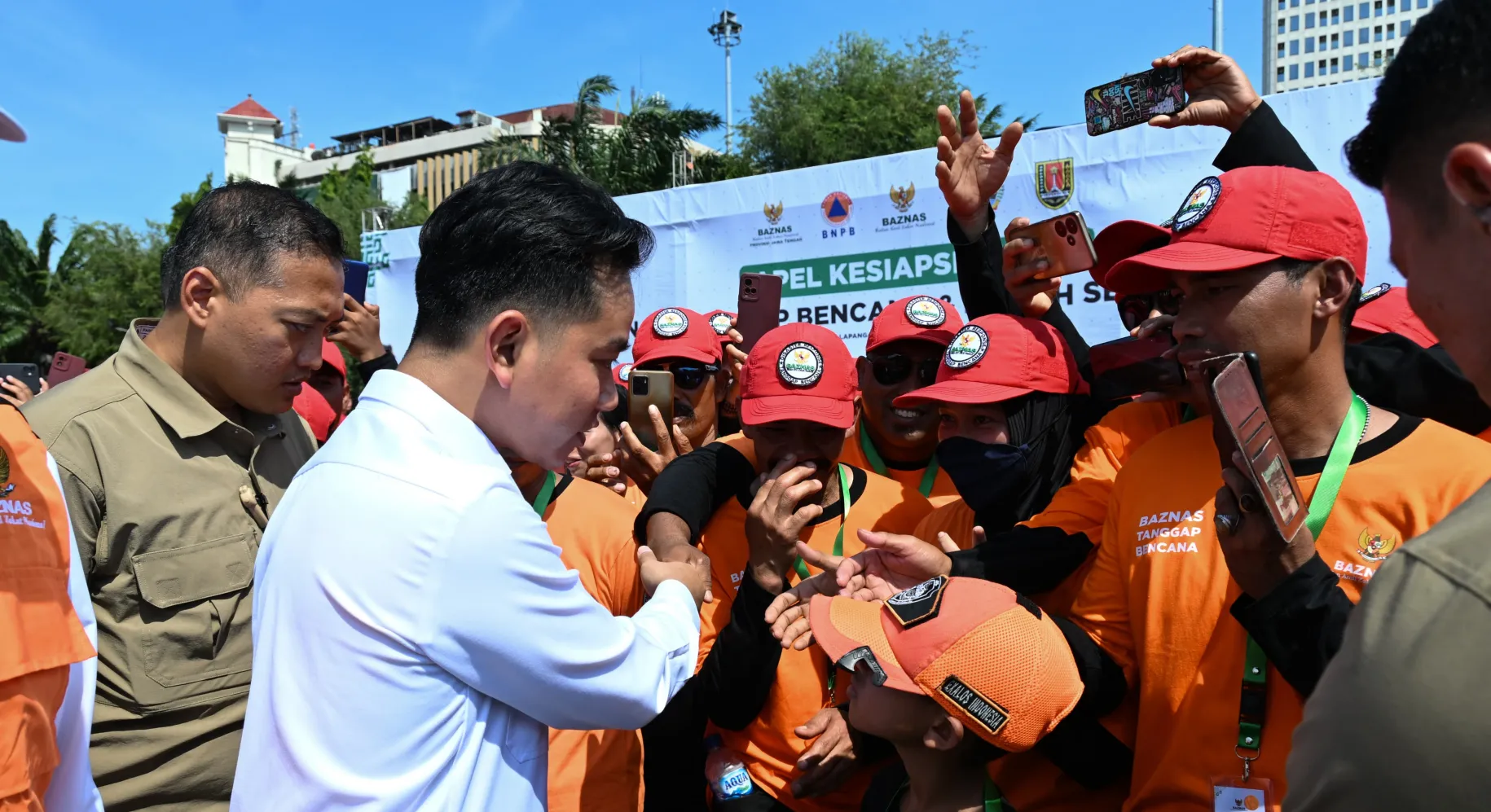 Wakil Presiden (Wapres) Gibran Rakabuming menjadi pembina Apel Kesiapsiagaan sekaligus membuka Rapat Koordinasi Nasional (Rakornas) BAZNAS Tanggap Bencana (BTB) serta Rumah Sehat BAZNAS (RSB) 2024 yang digelar di Lapangan Pancasila, Simpang Lima Semarang, Jawa Tengah, Jumat (13/12/2024).