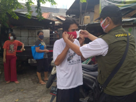 Pengurus RW, RT serta kader PKK Kelurahan Karet Semanggi, Setibudi, Jakarta Selatan, melakukan giat gebrak masker di lingkungan mereka.